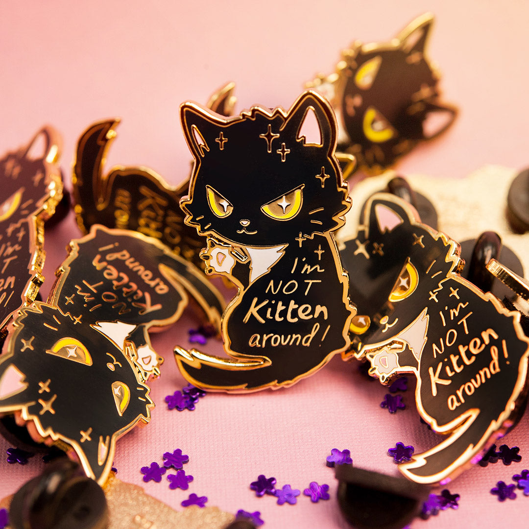 Rubber clutches also provide a much stronger hold than typical butterfly clutches, so when you drop your backpack or purse to greet your cat, they won't fall off. The hard enamel paired with the gold plating makes them ultra-durable as well, so these cutesy pins can serve their purpose for years to come.